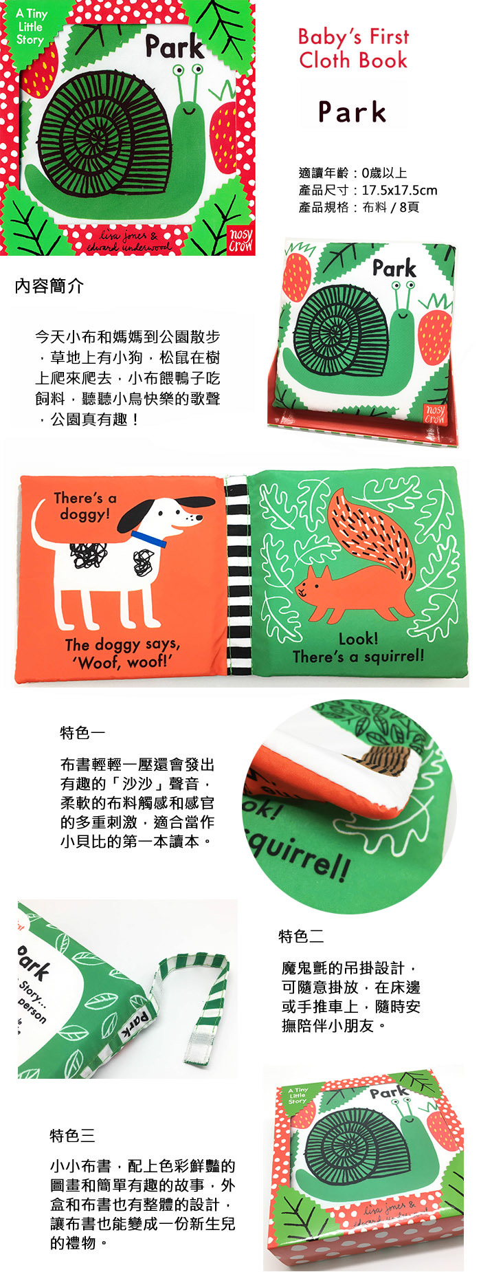 布書的設計色彩繽粉,吸引小寶貝的好奇心與刺激感官發展。大面積的圖案設計,家長也可以陪同說故事,增進親子關係
