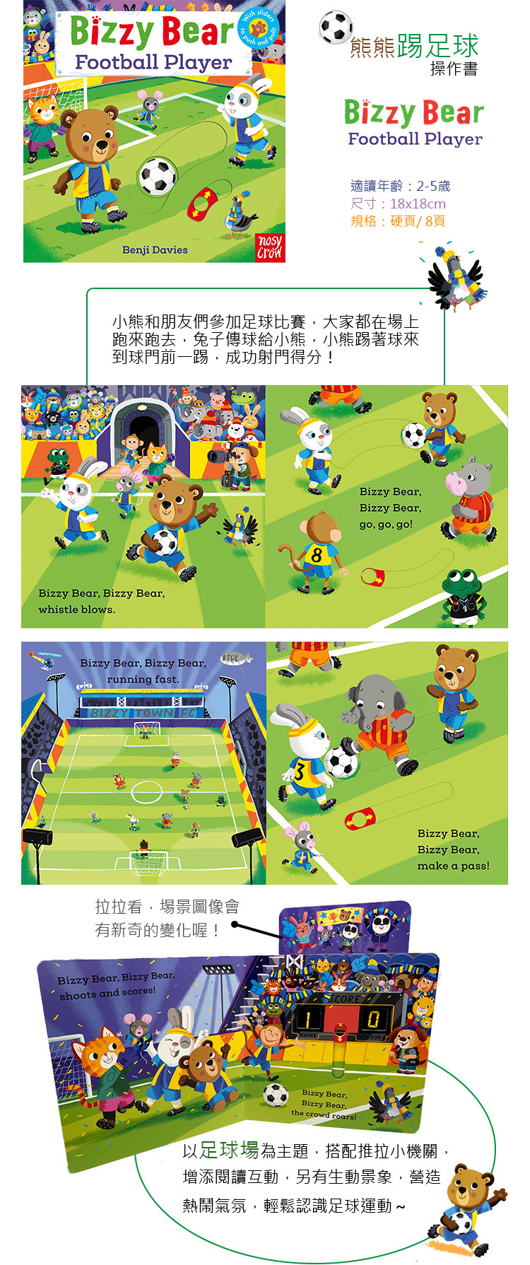貼近幼童生活的故事,圖文呈現簡單可愛,搭配操作互動機關,適合剛開始走動爬行的寶寶喔!