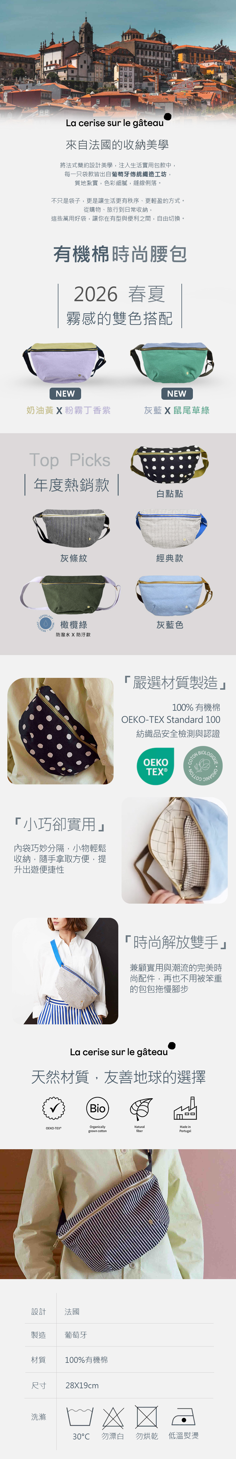 有了法國的時尚腰包,您就可以解放雙手攜帶日常必需品,適合女生、男生和兒童,大容量且有拉鍊內袋設計,可調節肩帶,布料款式經典時尚,為生活增添優雅簡約感。