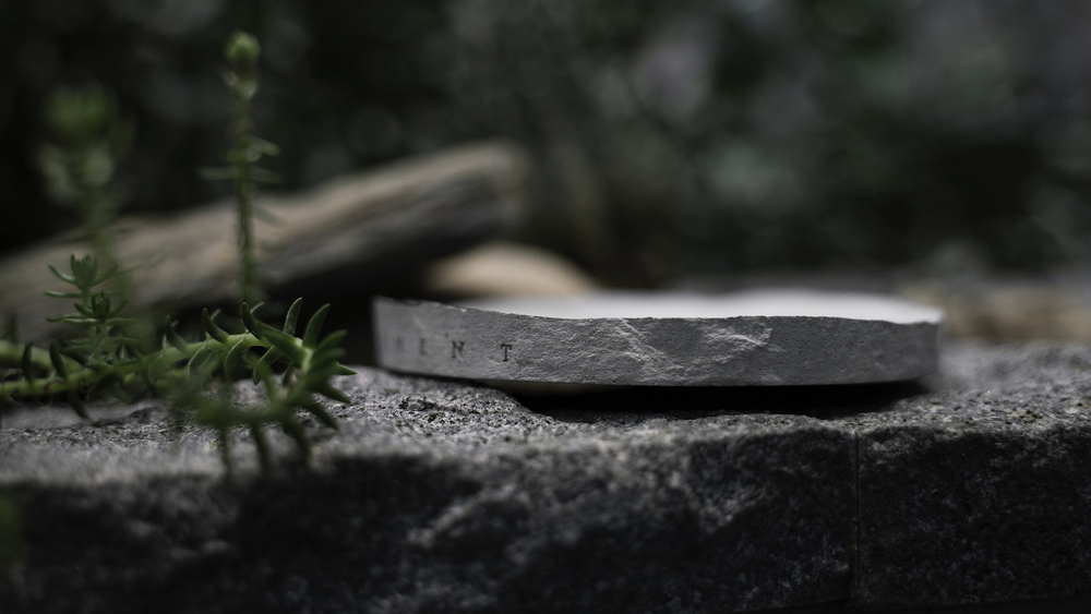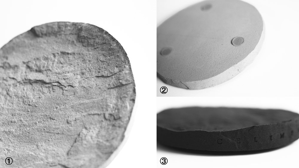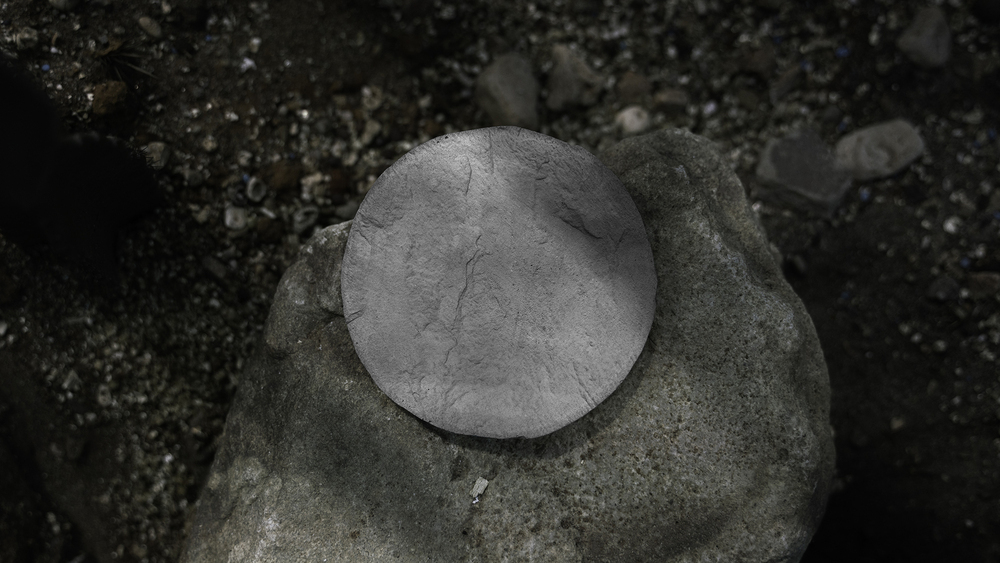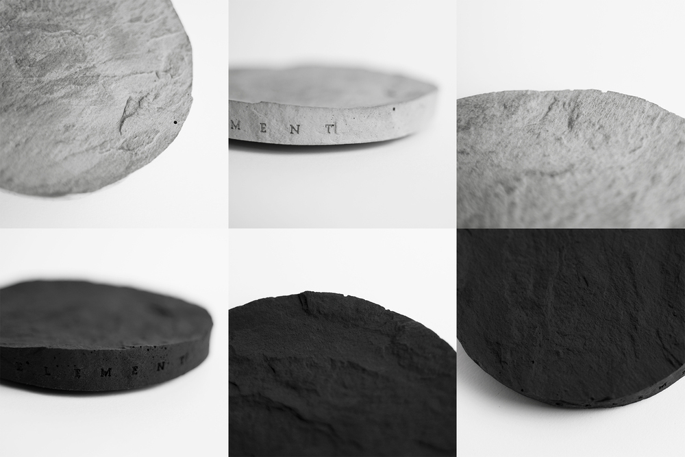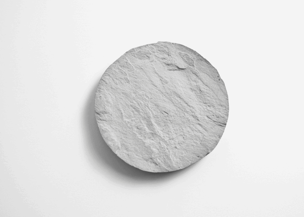 以圓形盤為基礎,設計微曲面的圓盤形,搭配岩石系粗獷的石紋風格,雕琢於圓盤上,零死角的呈現獨特石紋之美。