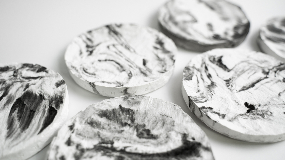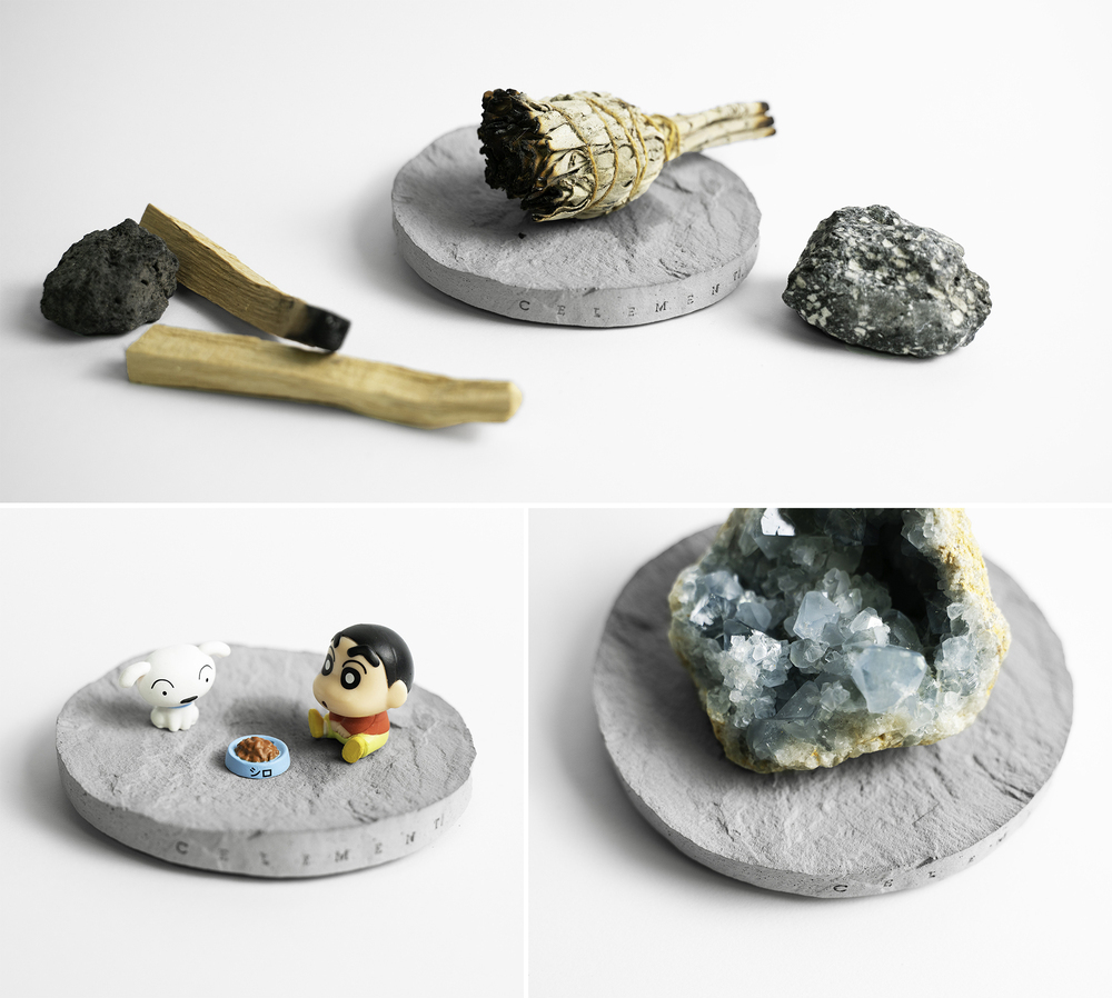 材質使用矽藻土與高硬度石膏的獨家調配比例,具有吸水能力,適合當作皂盤或杯墊使用,也可陳列各式小物。