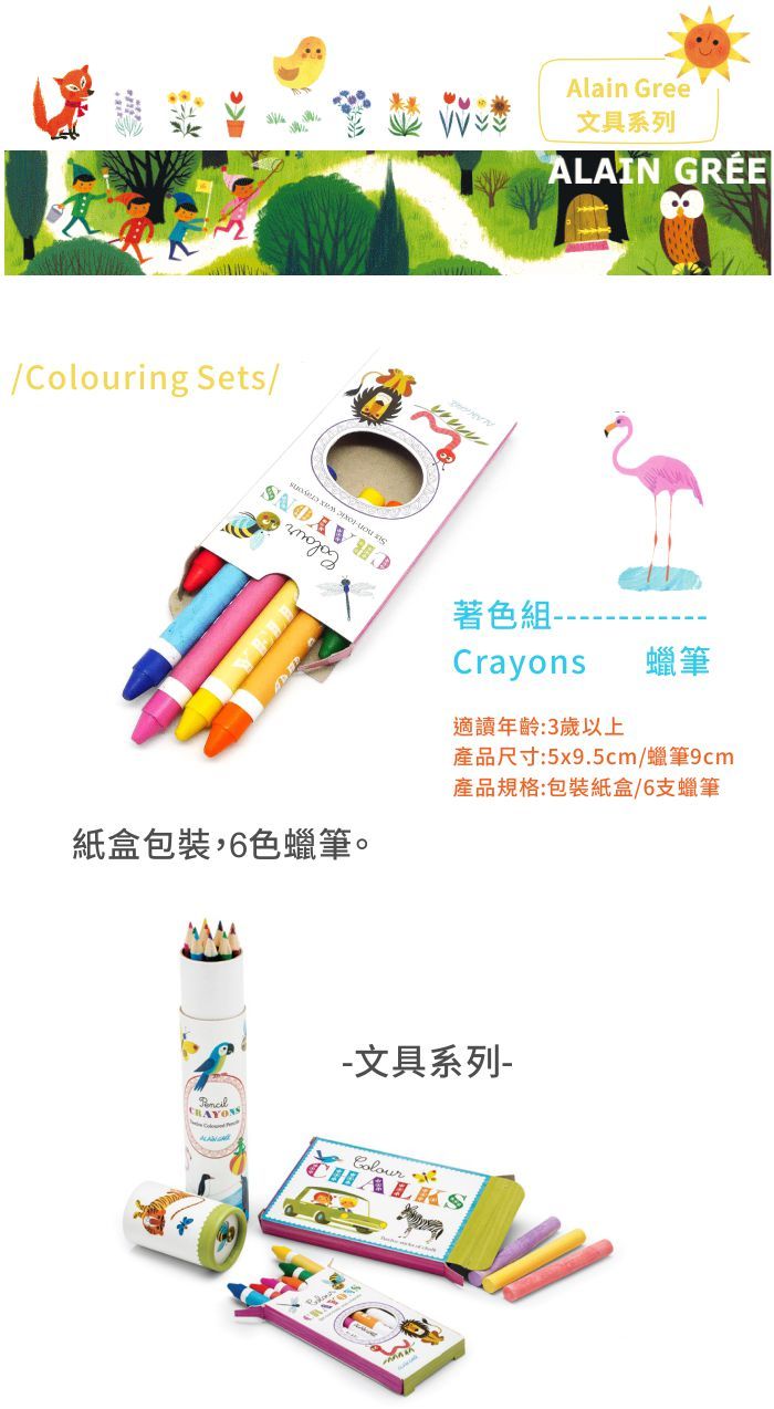 Alain Gree系列的著色蠟筆,給小朋友更多有趣創作工具,在畫紙自由揮發想像力,可搭配手工剪貼簿讓創作更有趣。