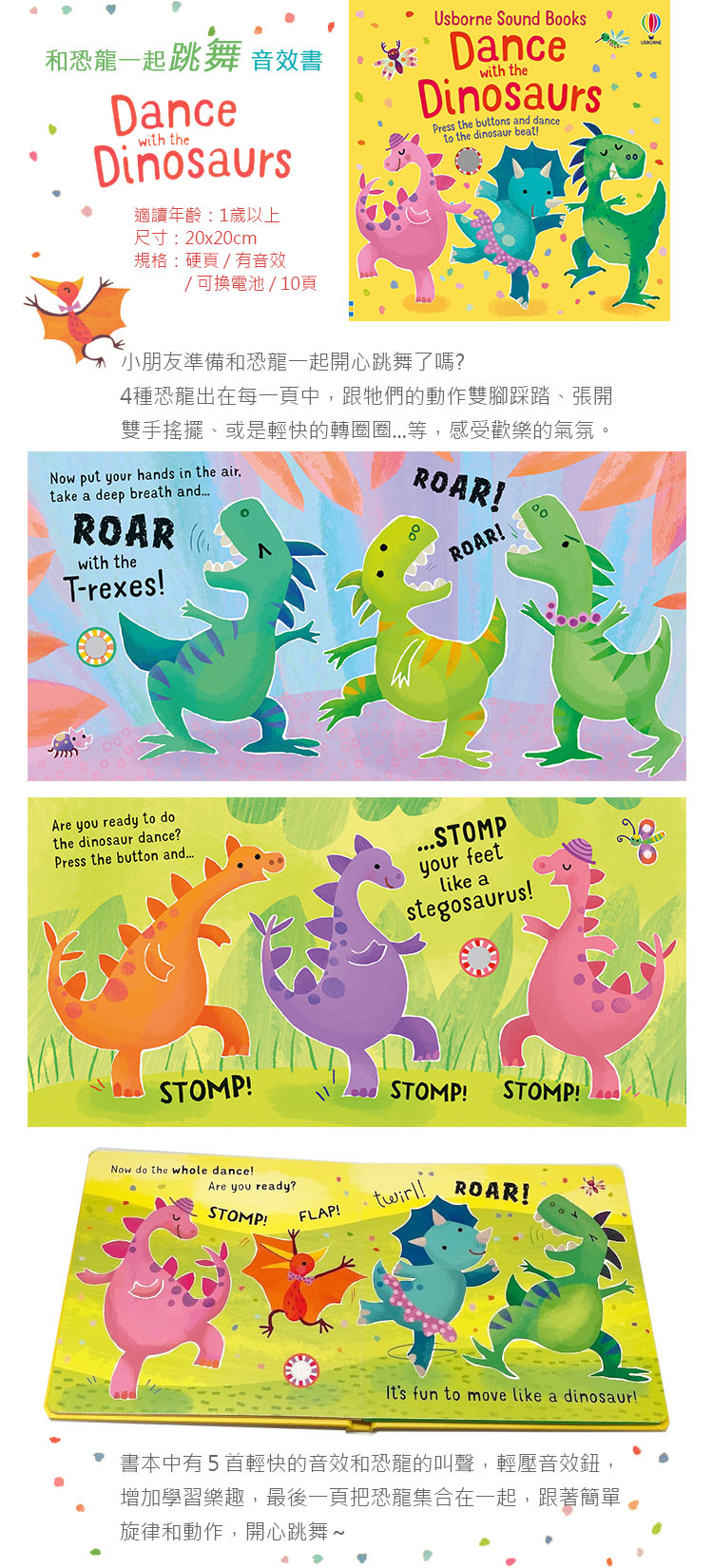 按下按鈕準備跳舞啦!帶小孩跟著音樂動滋動滋,動一動、跳一跳,模仿書中動物的動作,有趣又好笑,小孩子們都會很喜歡!