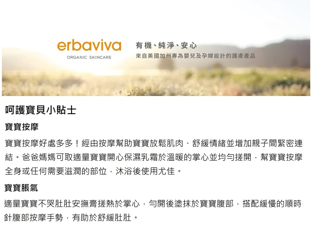 ● 用法&用途:取適量按摩寶寶身體。沐浴後使用佳,或肌膚乾燥時使用。