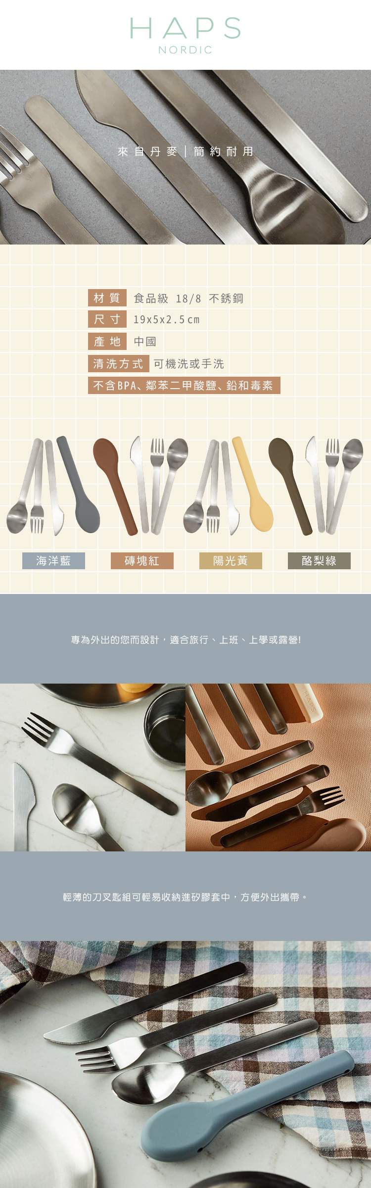 內容物:刀、叉、匙各一及一個矽膠收納套
