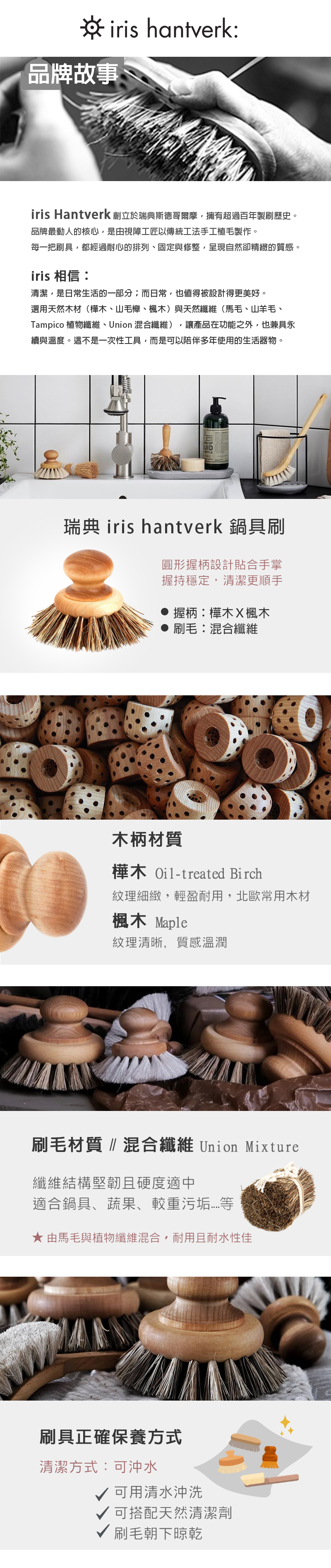 採用楓木手柄與混合纖維刷毛製成,刷頭搭配堅固旋鈕設計,握感舒適且操作靈活。不僅適合清潔馬鈴薯及各類根莖蔬菜,也能有效刷洗油污較重的鍋具與鍋底。
