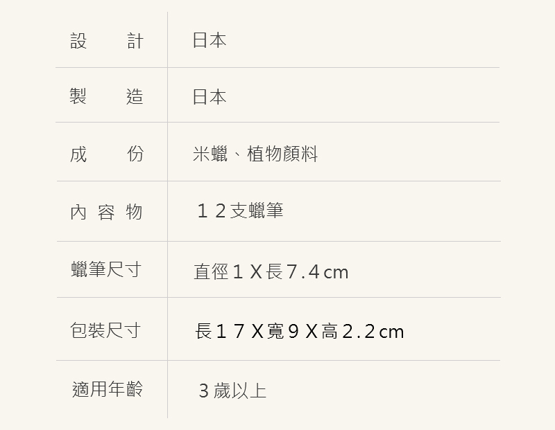 米糠蠟製成,滑順、好擦拭又顯色,無毒環保,爸媽安心,孩子快樂,也常被稱為米蠟筆。與水混合可以製成水彩。