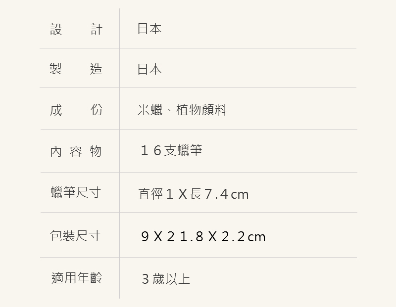 色彩齊全,畫起來滑順顯色,好清洗不殘留,無毒安全,是兒童最愛的米蠟筆。與水混合可以製成水彩。
