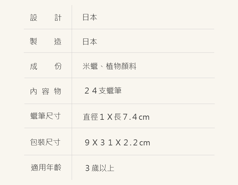 材質:米糠蠟、顏料