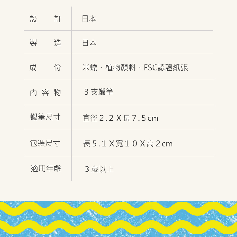 材質:米糠蠟、顏料、FSC認證紙張