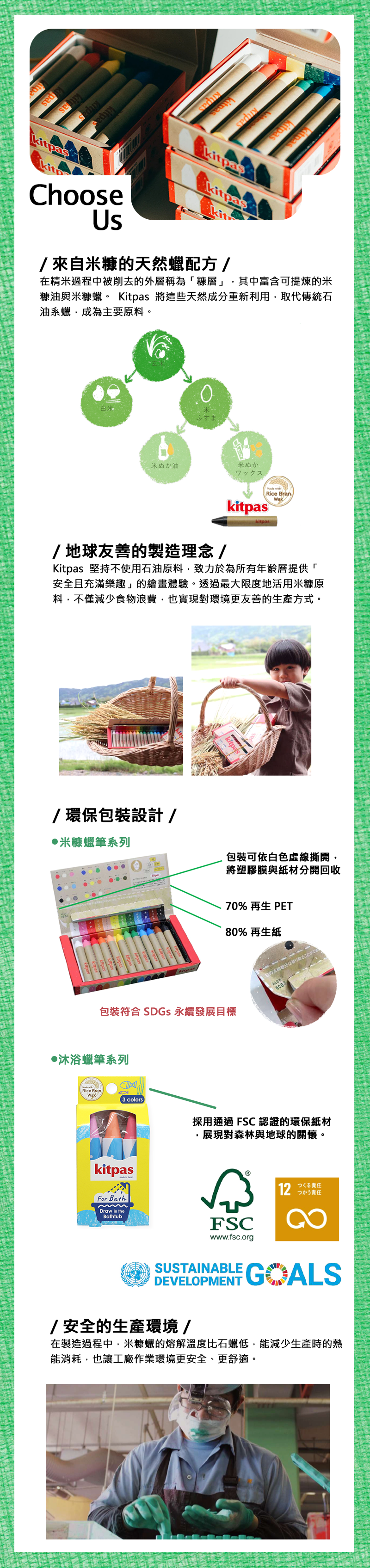 材質:主體-米糠蠟、顏料、乳化劑、FSC認證紙張/海綿-聚氨酯泡沫/收納網-聚酯