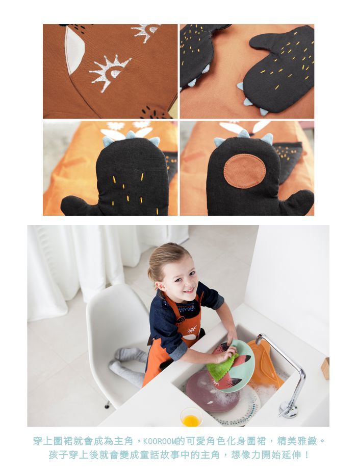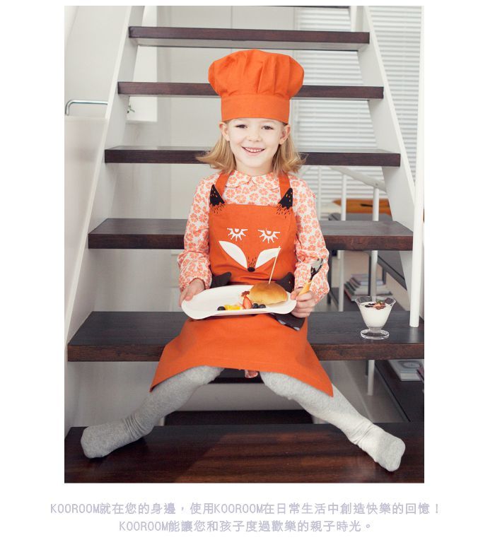 有著可愛狐狸圖樣的整體設計,套件內含圍裙/帽子/手套,可在烘培、畫畫或園藝時穿戴,陪伴孩子創造快樂時光。