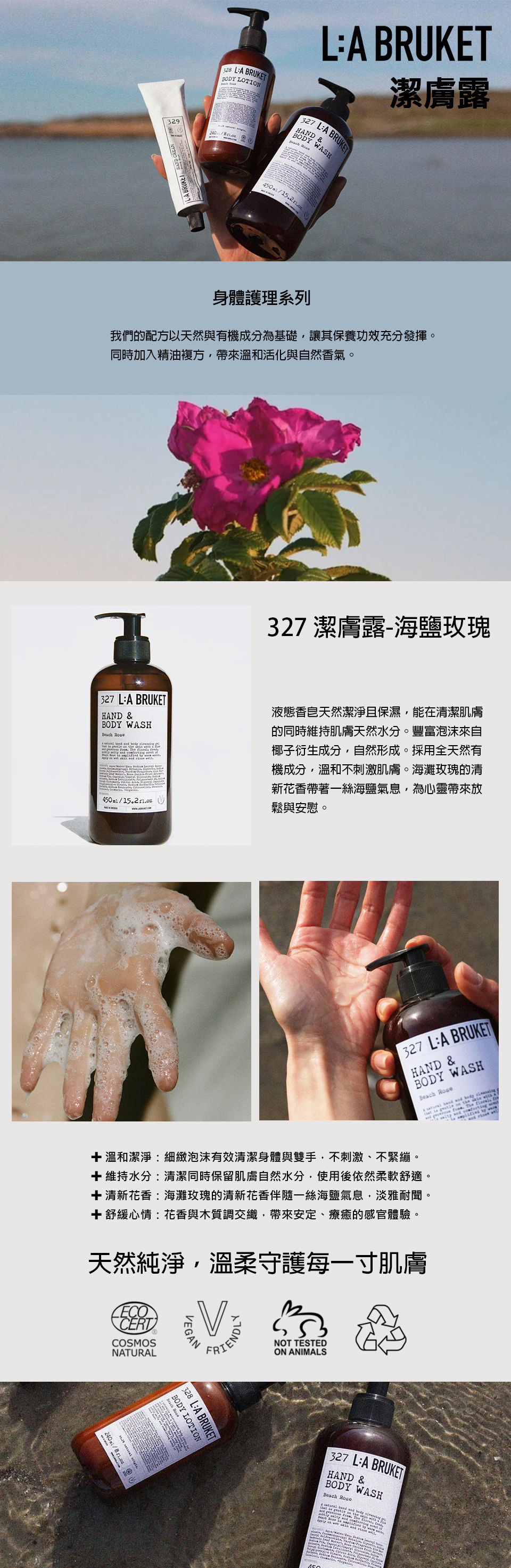 成份溫和且高度保濕的天然液態潔膚露,可輕柔清潔與滋潤身體與手部肌膚。輕鬆起泡,綿密滑順,享受清香舒適的沐浴體驗。添加天然精油有效保濕肌膚,消除疲勞感,療癒身心。清潔完皮膚保持水潤一整天!