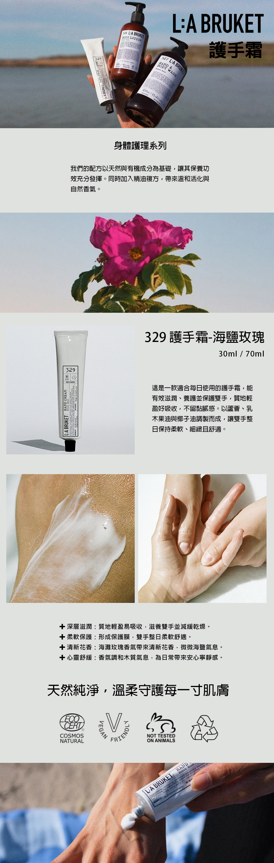 以溫和的乳木果油、椰子油為基底,滋潤手部皮膚,可抵禦自由基侵害,低敏度成份不刺激手部肌膚。