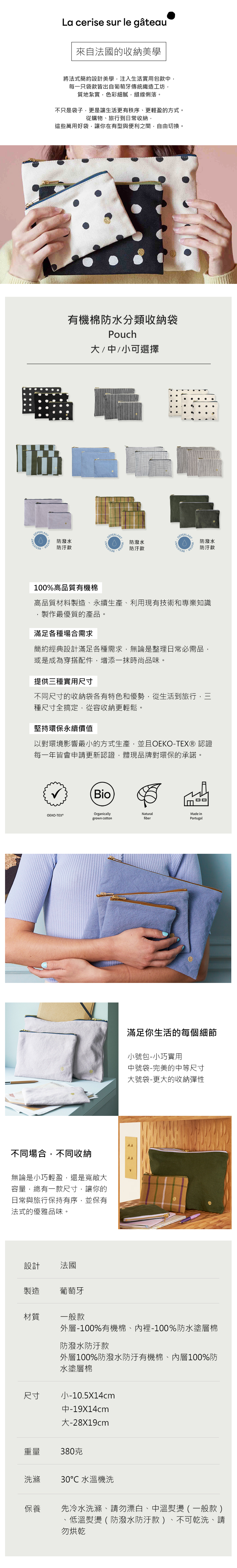 來自法國的收納袋是大包包裡的分類幫手,輕鬆將隨身小物收納分類,布料款式經典時尚,為生活增添些許優雅簡約感。