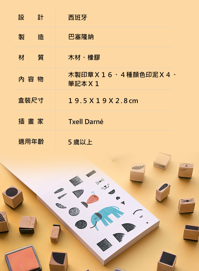 內容物:木製印章X16、4個彩色印泥X4、筆記本X1