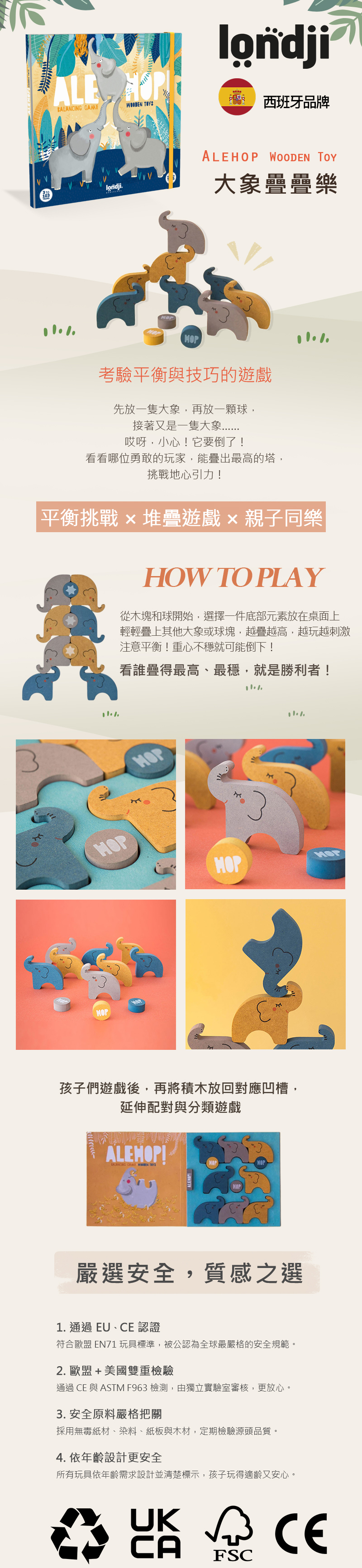 先從一隻大象開始排起,接著是一顆球,再放上另一隻大象,就這樣越疊越多,小心別弄倒了!