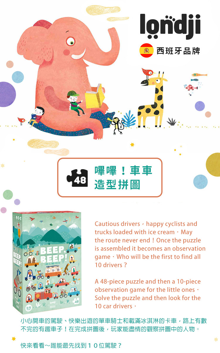 內容物:48片拼圖、10片車車造型拼圖