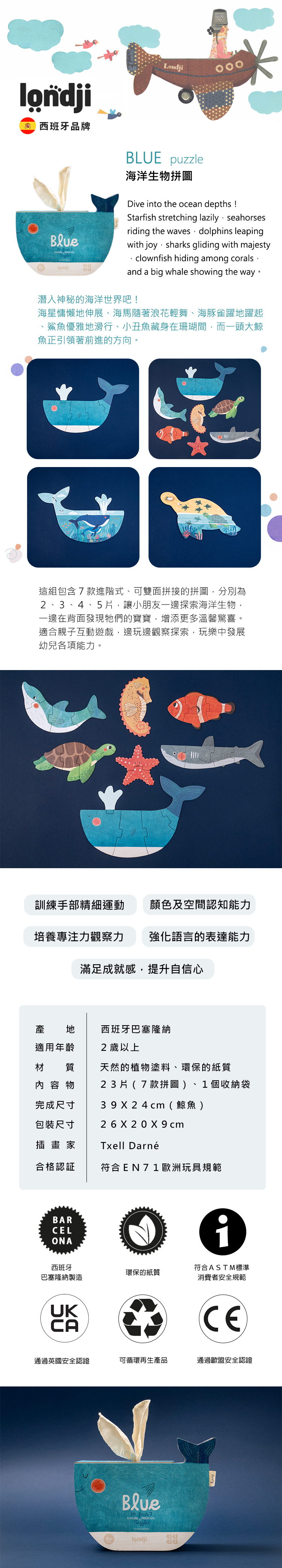 內容物:23片拼圖,共7款生物、1個收納袋