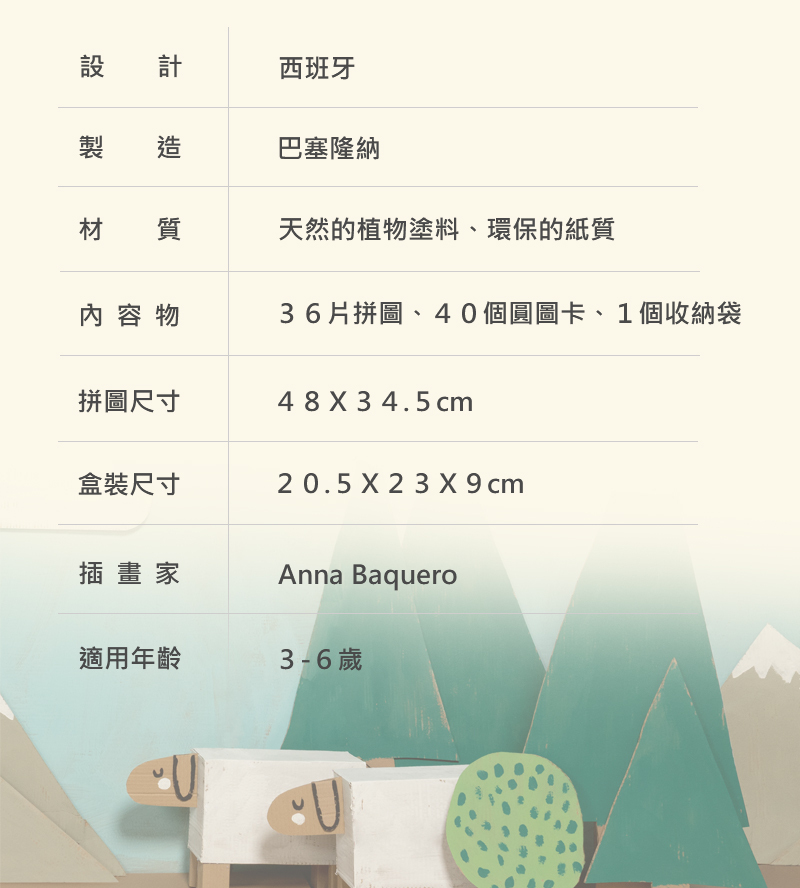 內容物:36片拼圖、40個圓圖卡、1個收納袋