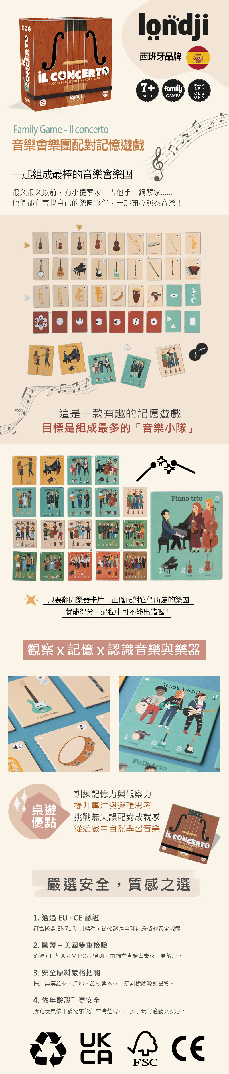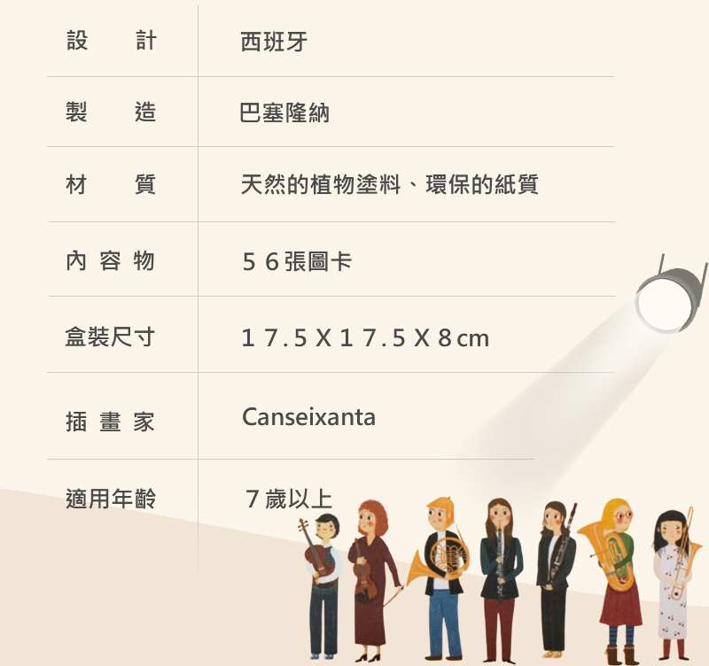 從前有很多音樂家,小提琴手、吉他手、鋼琴家…他們都在尋找一個樂團來一起演奏音樂!卡片設計靈活,可創造多種遊戲方式,幫助玩家增進音樂知識。