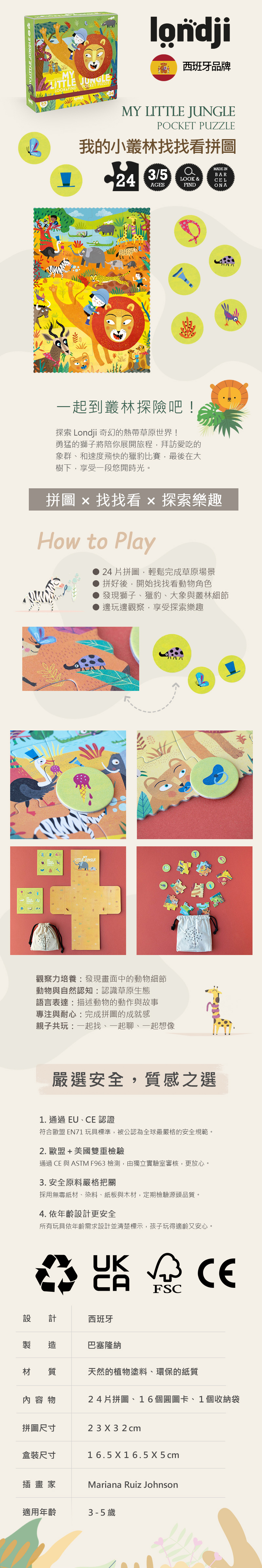 內容物:24片拼圖、16個圓圖卡、1個收納袋