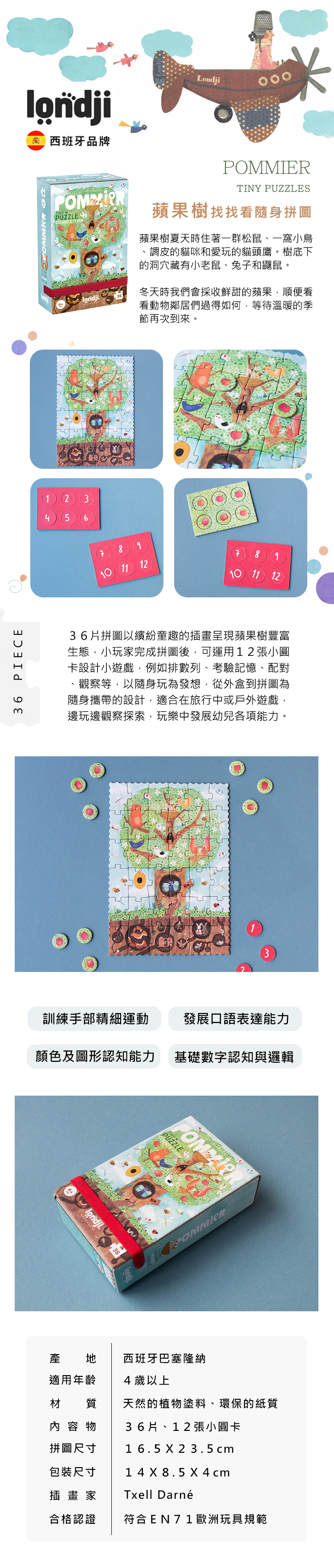 24片拼圖搭配觀察遊戲,拼好後在整副圖中尋找12個圖案,小巧的尺寸非常適合旅行隨身攜帶...