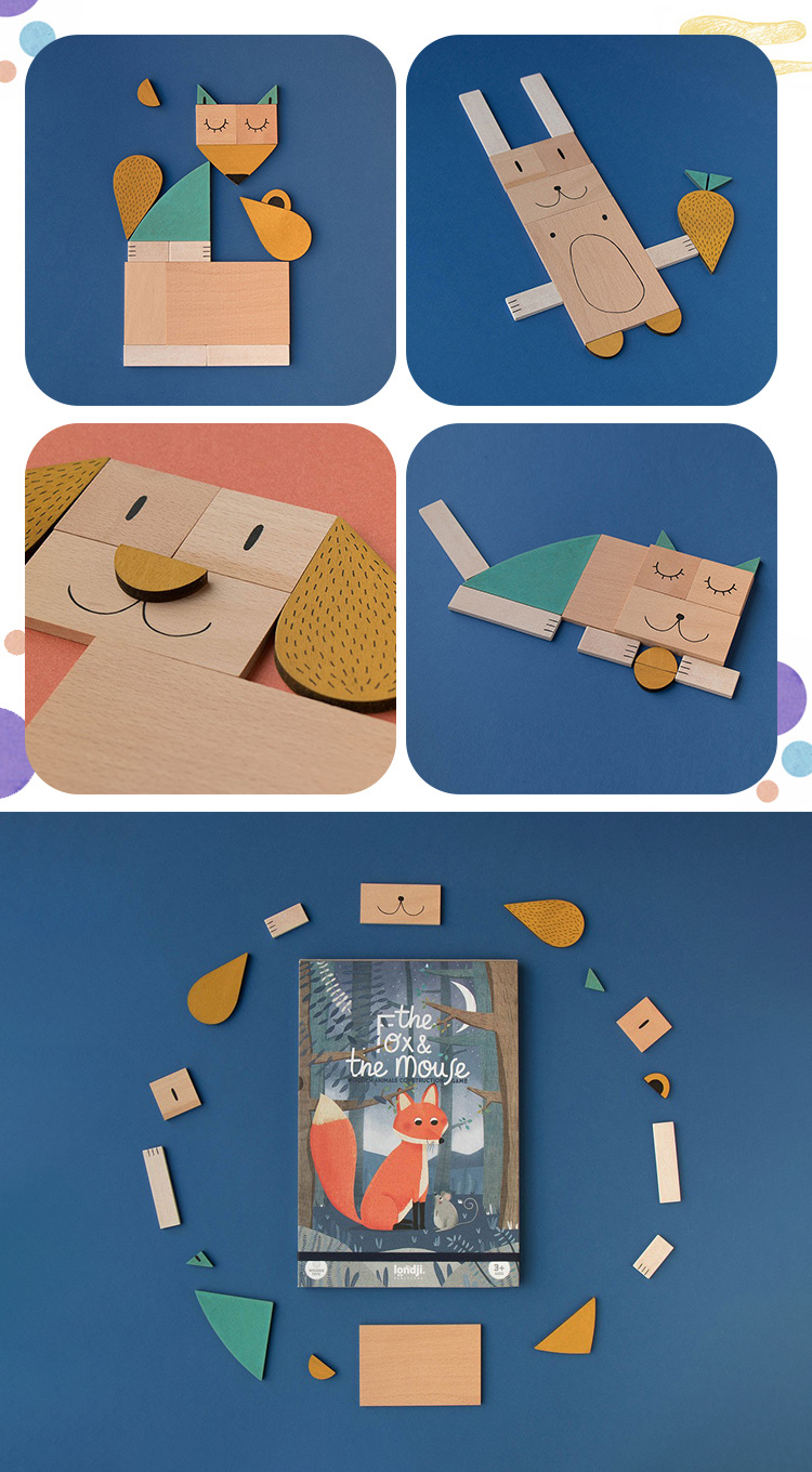 16塊彩色木片將打開一個居住著貓、鯨魚、貓頭鷹和狐狸的想像世界...