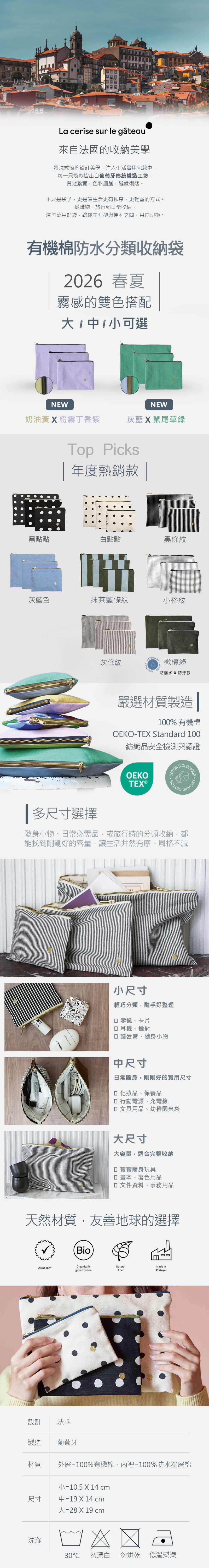 來自法國的收納袋是大包包裡的分類幫手,輕鬆將隨身小物收納分類,布料款式經典時尚,為生活增添些許優雅簡約感。