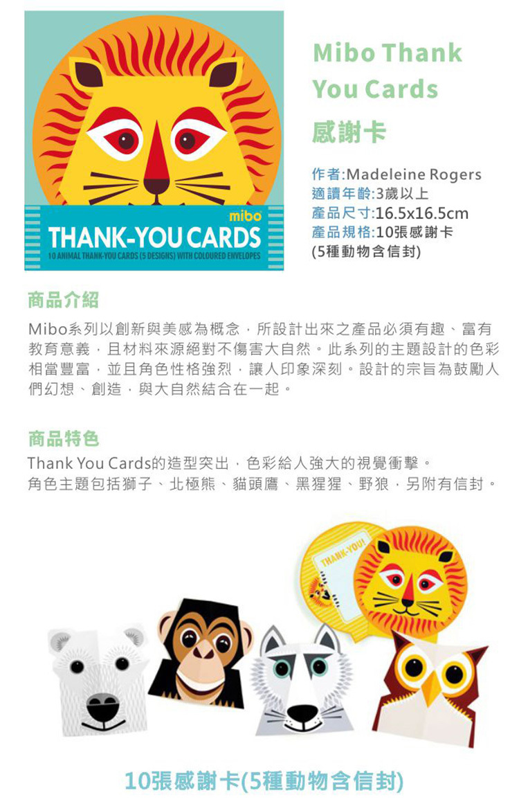 五款Mibo 動物明星造型感謝卡,為生活點綴更多美感。