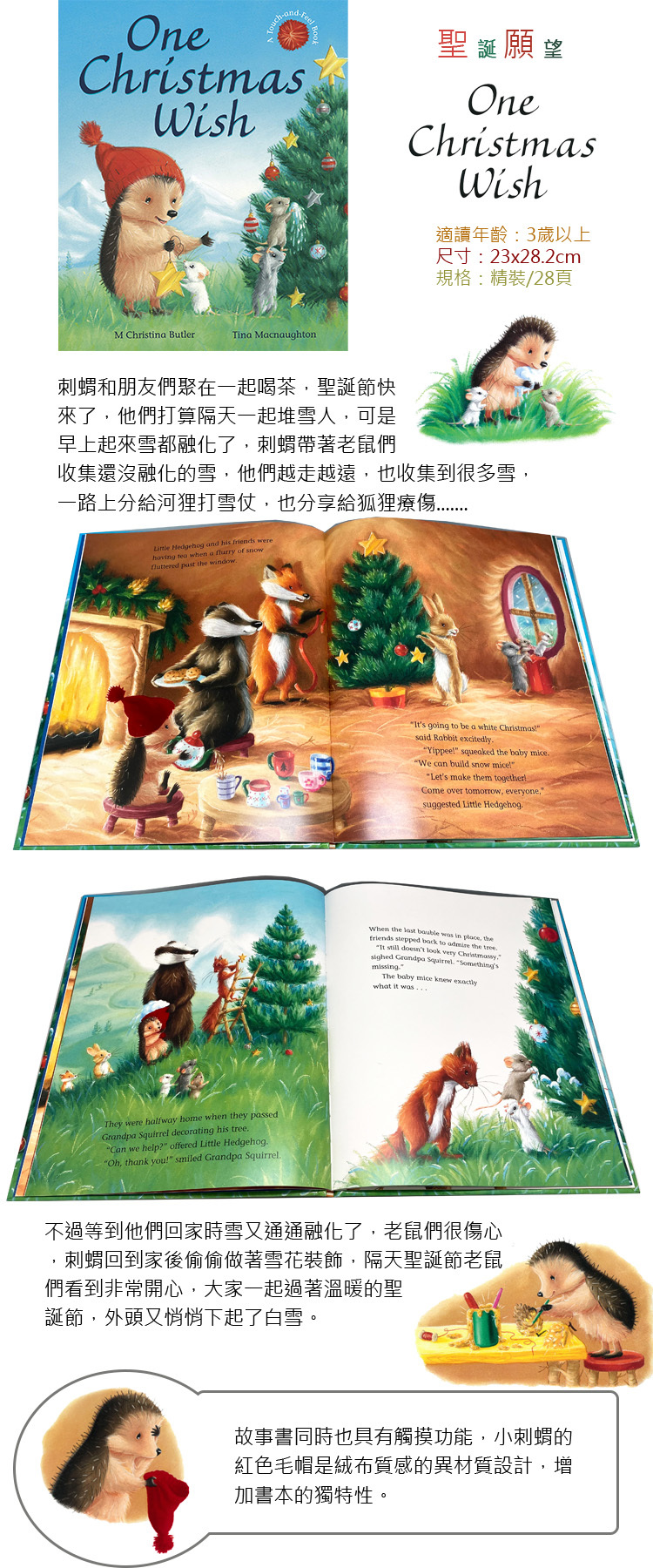 繪本描述刺蝟和朋友們一起過聖誕節的溫馨故事,適合親子在節慶中共讀享受聖誕氣氛。