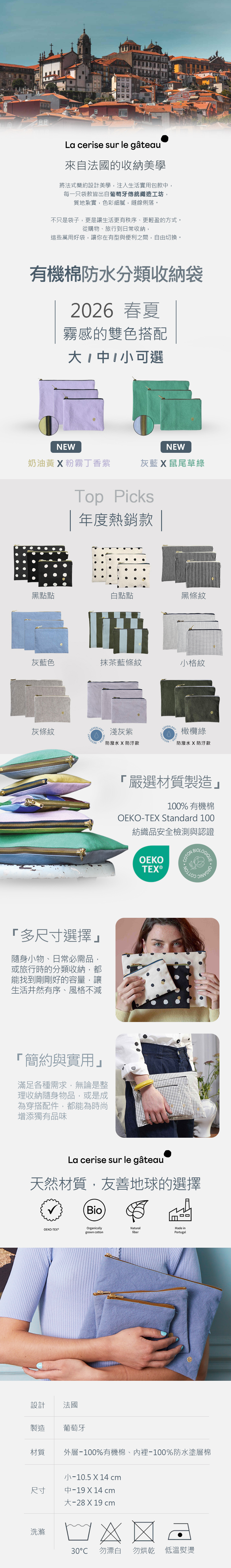 來自法國的收納袋是大包包裡的分類幫手,輕鬆將隨身小物收納分類,布料款式經典時尚,為生活增添些許優雅簡約感。