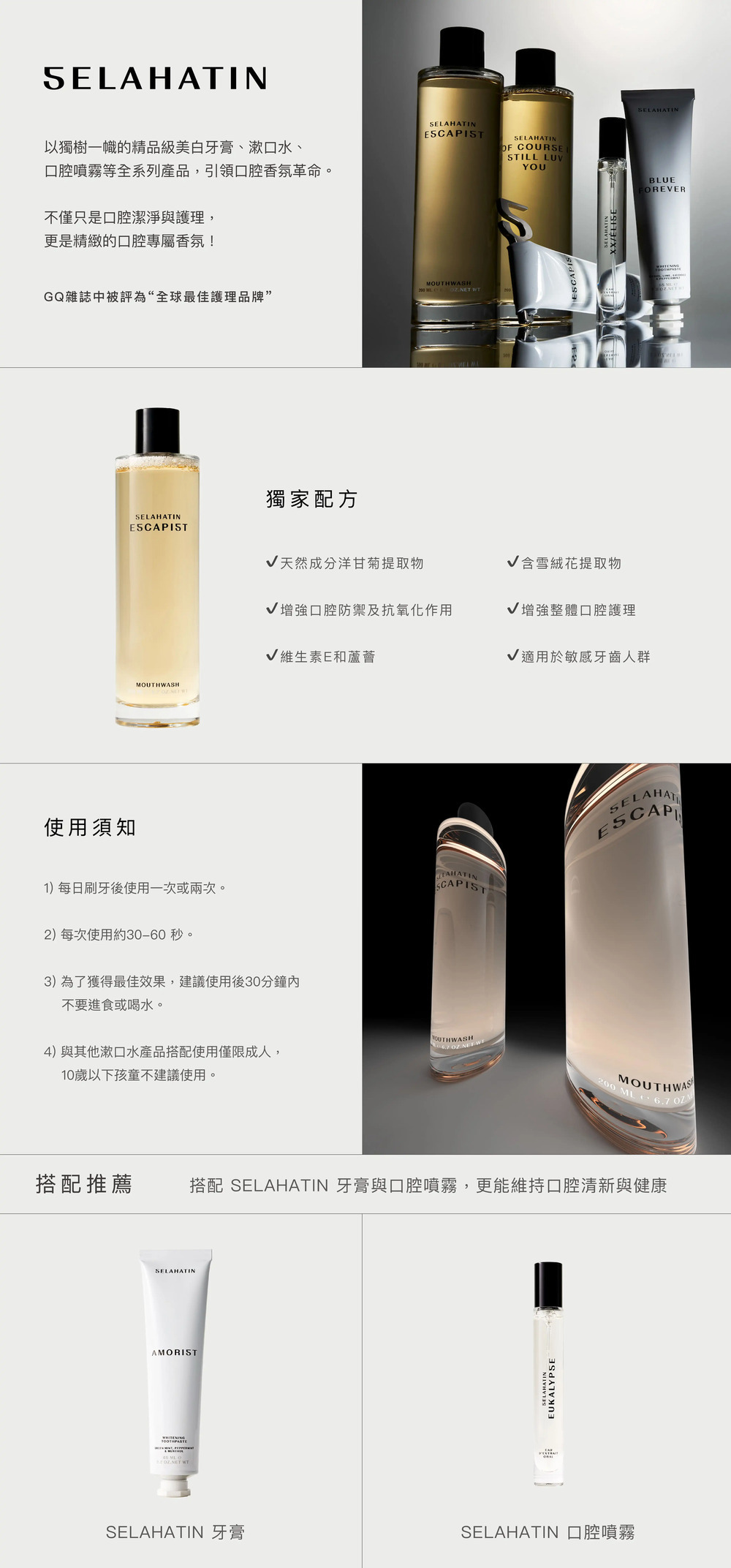 ● 用法&用途:於刷牙後使用,或是需要保持口氣清新。建議每次使用一瓶蓋,持續漱口30秒後吐出。