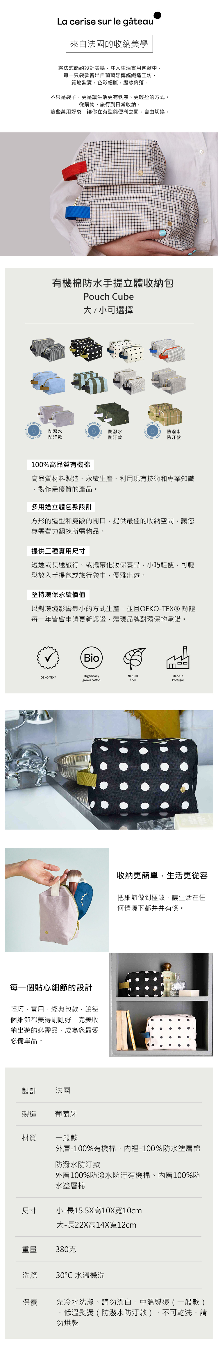(預購11/20)法國La cerise sur le gâteau 有機棉防水手提立體收納包-黑條紋(小)