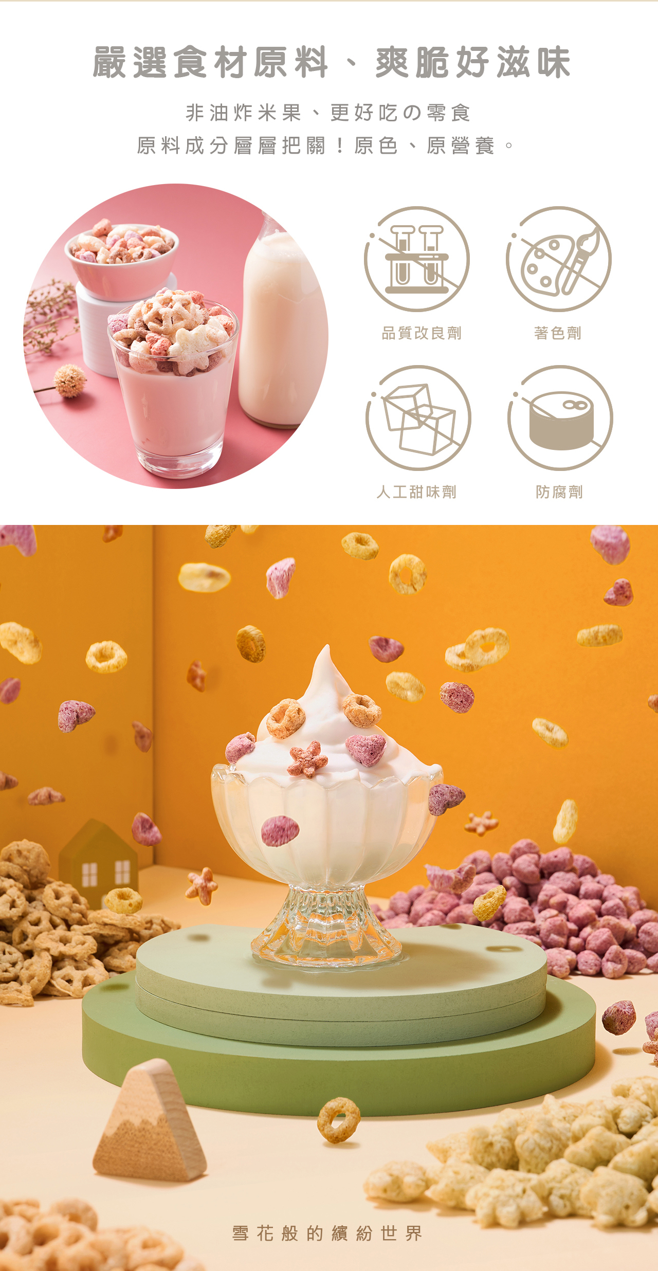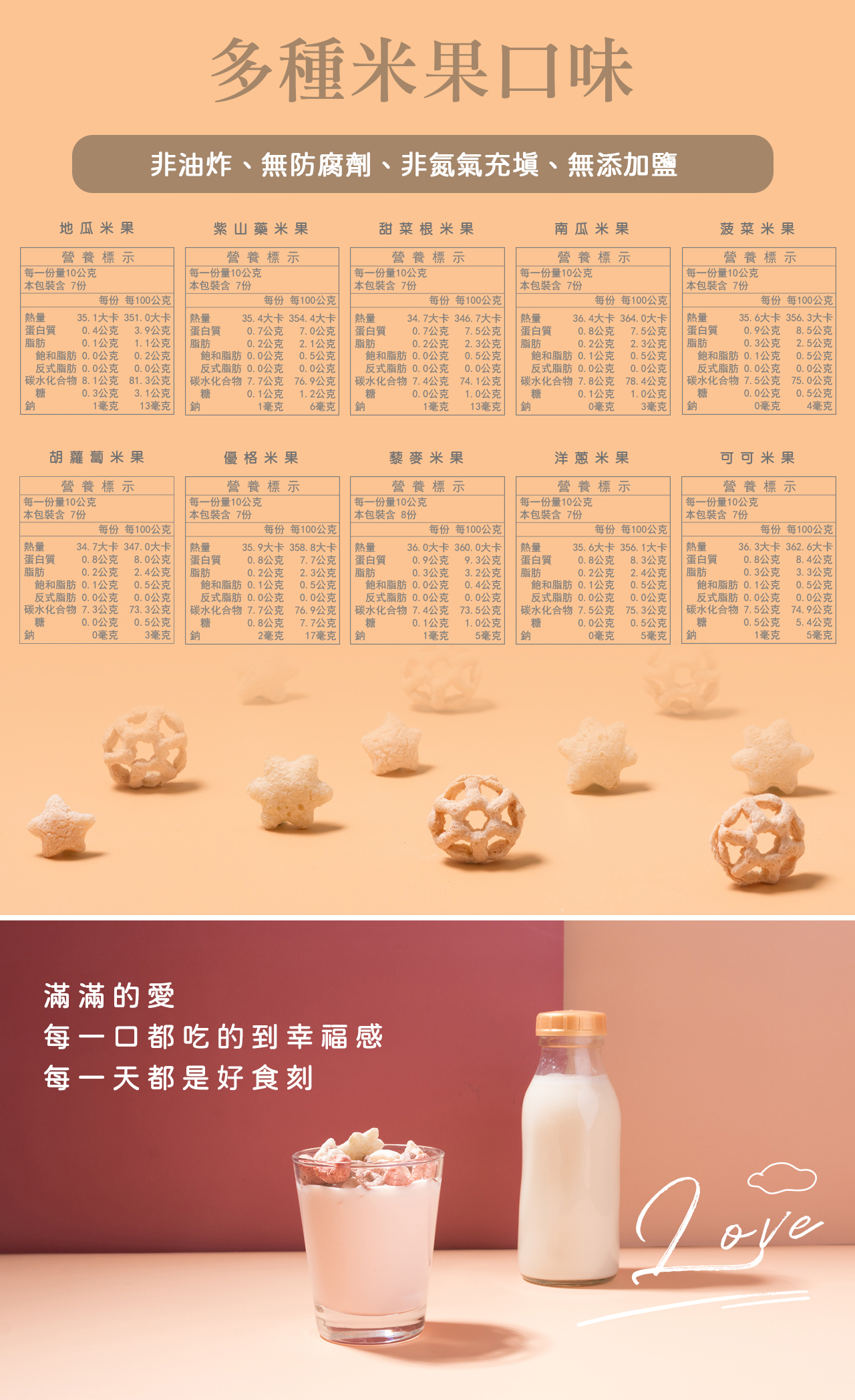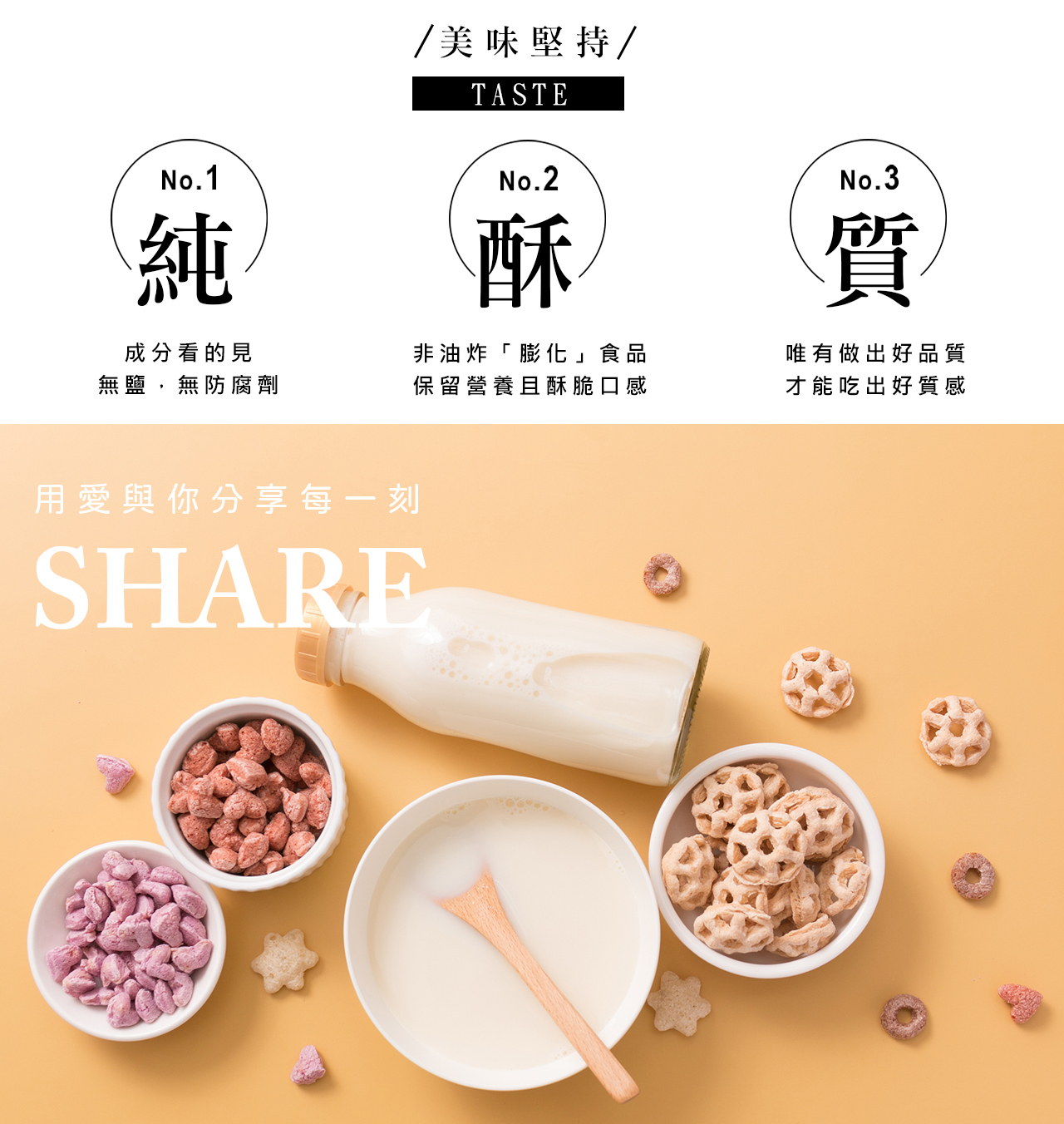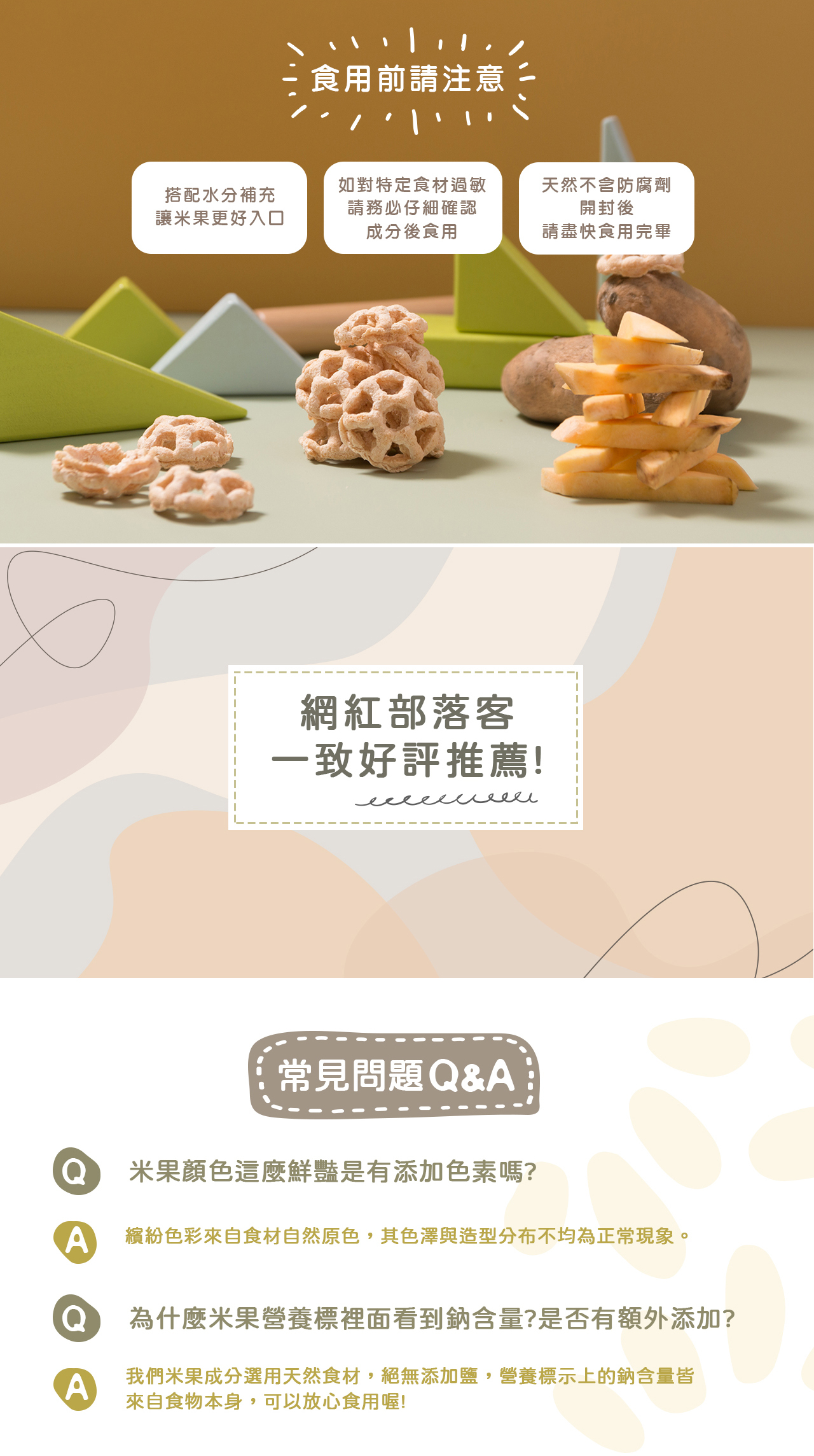 ●非油炸,採用膨化方式保留大地食材原味和營養