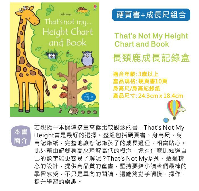 規格:硬頁書*1 / 約190公分以上成長尺及記錄貼紙*1