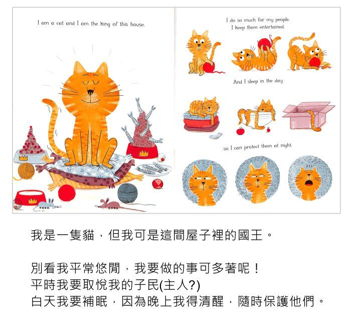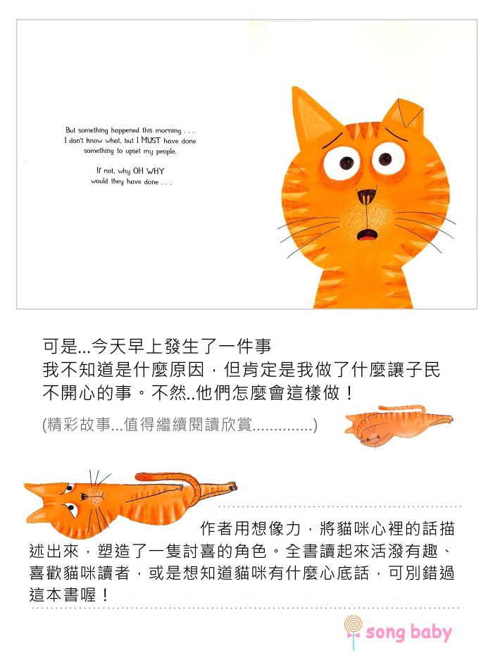 作者將貓咪擬人化變成可愛又討喜的主角,運用的豐富的想像力讓故事生動活潑,流暢的句子及童趣的畫風,讓大小朋友都會愛不釋手的繪本。