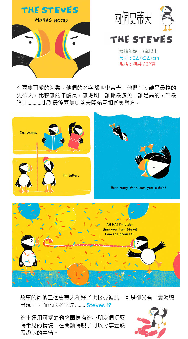透過二隻小企鵝詼諧逗趣的相處故事,搭配可愛的繪圖,讓親子在閱讀時輕鬆愉快。
