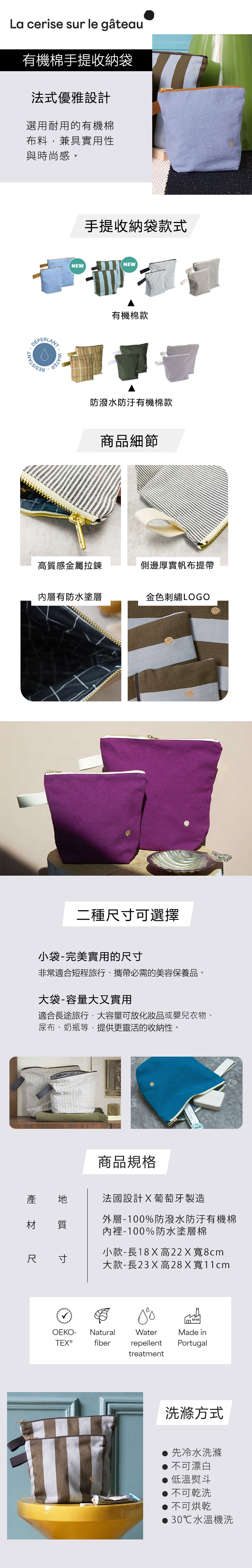 (預購11/20)法國La cerise sur le gâteau 有機棉防水手提收納袋-灰條紋(小)