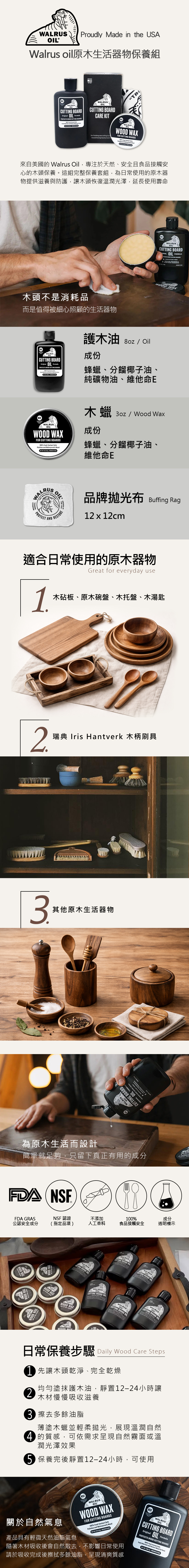 內容物:8oz 護木油、3oz 木蠟、品牌拋光布