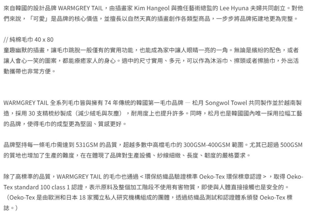 清洗方式:由於布料的特性,洗滌後可能會出現縮水(1-2公分)/ 在洗衣機中洗滌時,建議使用柔軟模式 / 請勿使用柔軟劑或漂白劑 / 可使用烘乾機烘乾 / 手洗後,輕輕擰乾並在陰涼處晾乾。