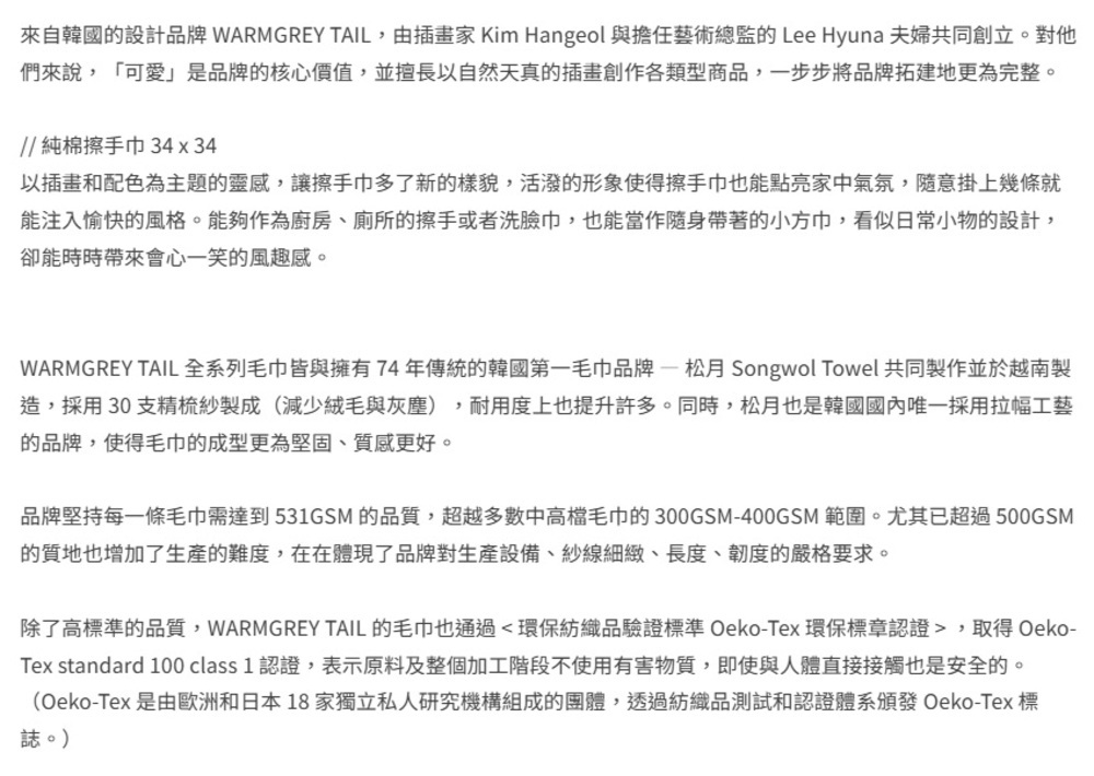 韓國WARMGREY TAIL 純棉擦手巾-摩卡熊